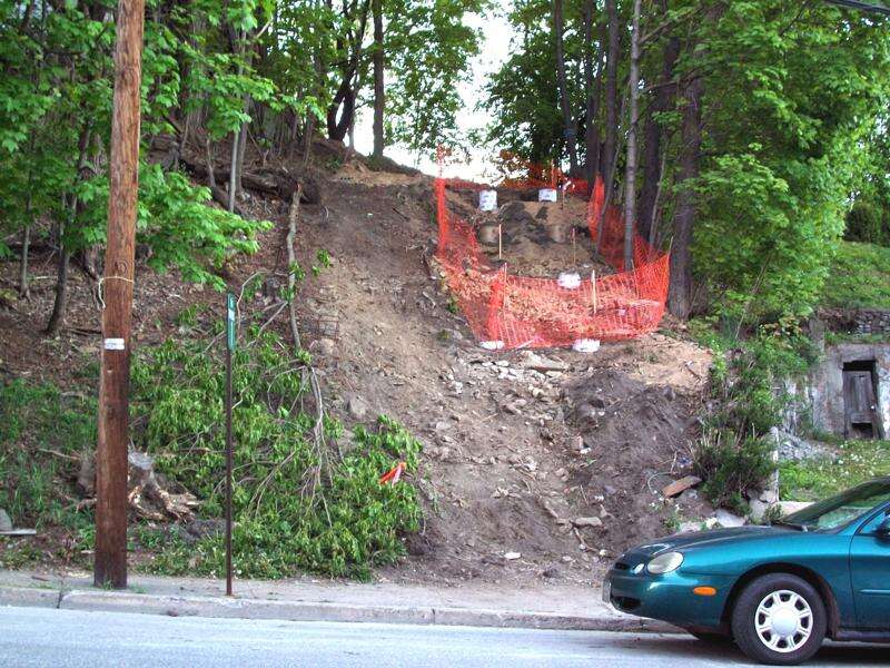 That's because Carriage Street is strictly for pedestrians. It's a stairway connecting two streetsThis summer, the steep avenue will return to Tamaqua's South Ward after an absence of 40 years, and its reappearance will be permanent because Carriage Street will no longer be made of wood."There will be steel steps," said Dan Schroeder, community development officer.Carriage Street is considered a paper street and rarely shows on maps. The wooden staircase once served as a heavily used passage connecting West Spruce and South Nescopec streets in a heavily populated section of the South Ward.But, after deteriorating over the years, the steps were removed about 1970 and nature quickly reclaimed the steep mountainside.As a result, younger citizens today wouldn't have a clue about the "stairway that once was." But later this summer, Tamaqua's newest "street" will reappear and is expected to see substantial foot traffic.The project is a major infrastructure improvement at a cost of $221,000, and progress is being made quickly now that good weather has arrived."The foundation walls are formed at the top of the steps, and they're planning on pouring concrete this afternoon," said Schroeder on Thursday.Project funding was secured through a PennDOT Safe Streets to School Grant as well as Elm Street funding from the Department of Community and Economic Development.The Carriage Street steps will connect a low-lying, residential section of the South Ward with a hilltop area of the South Ward which hosts Lehigh Carbon Community College campus and additional residential neighborhoods. The staircase also will facilitate pedestrian access to the business district and the Tamaqua National Historic District.In addition, the stairway will see use by students of Tamaqua Area High School and the Tamaqua Area Middle School Campus.The event is seen as not only the re-emergence a steel staircase, but rather, a tangible indication of rebirth in Tamaqua's sprawling South Ward community."We're really excited to have this project actually under construction," said Kathy Kunkel, Elm Street manager. "This is the first of three major projects developed by the South Ward Neighborhood Committee as part of our five-year Elm Street Program."Various committees associated with the Elm Street Program have put in countless hours toward revitalization efforts in the South Ward section. Much of that hard work has been low-key and not highly publicized despite the countless volunteer hours put into improvements.The Carriage Street project, however, is different in that it is very noticeable and will provide an enhancement to the community that is hard not to miss."All of the hard work done by our volunteers has mostly been behind the scenes," said Kunkel. "So it's nice to have something so visible to show our determination to revitalize our neighborhood. We couldn't do it without the help of DCED and PennDOT."If the weather continues to cooperate, Carriage Street will reappear in Tamaqua in the coming weeks, providing two lanes of pedestrian traffic and handrails for safety.Plus, it will be Tamaqua's only "street" without a speed limit.
