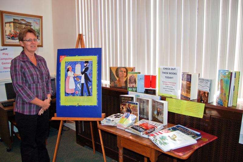 LINDA KOEHLER/TIMES NEWS Diane Danielson, Palmerton Area Library's director, applied for a grant and received several books for the library on the Civil War and invites people to come in and see the display and take them home to read.