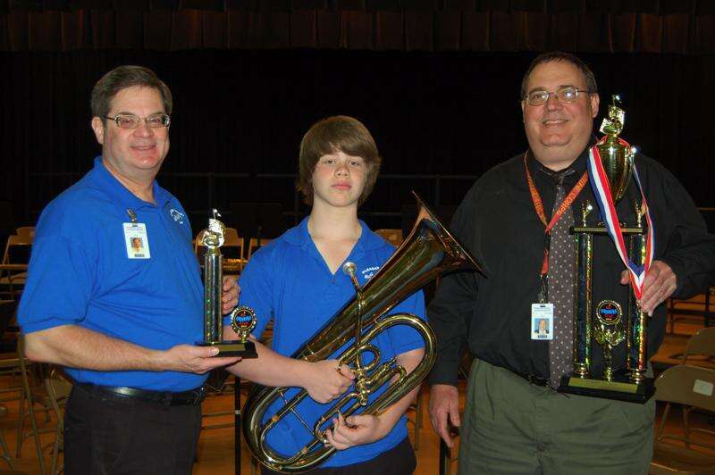 The band received a silver medal for excellence in performance and a third place performance trophy in the middle school concert band category.They played for experienced and critical musician/judges and were rated on nationally recognized standards of performance."I'm very proud of them considering they were competing against older and longer playing students. There is no intermediate level so they were competing against middle school level," said their band director, Evan Reese.Douglas Stangl, a 7th grade student, plays the baritone horn and he received one of two Outstanding Soloist awards given."I was kind of surprised. They only give out two awards and I got one. It made me very happy and I'm proud of myself," says Stangl, 13.He has been taking music lessons for the last four years. He started playing the trumpet but switched over to the baritone in fifth grade. He also plays the guitar and loves to sing. He plans to audition for "American Idol" when he turns 16. He knows no matter what he does in life, music will always be his passion.Stangl is the son of Andrea and Larry Kennedy of Effort.The community had an opportunity to hear the band at the Spring Concert which featured the chorus and band on May 18 at PVI.The 7th grade chorus sang several selections. Featured soloists were Sammie Bartholomew, Zoe Bartolacci, Courtney Delistovich, Alyssa Ramesy, Kacey Burrus, Samantha Edwards, Regan Welkey, Doug Stangl, Hayley Blanding and Rachel Martello.The 7th grade band played several pieces and selections featured Oliva Karaman, flute, Angelina Carbone, piano, Nicole Bernard, oboe, Sophia Betancourt, oboe, Douglas Stangl, baritone horn, Madison Olexson, flute, Theodore Graham, tuba as soloists.The combined band and chorus finale featured "Our America" by Higgins.