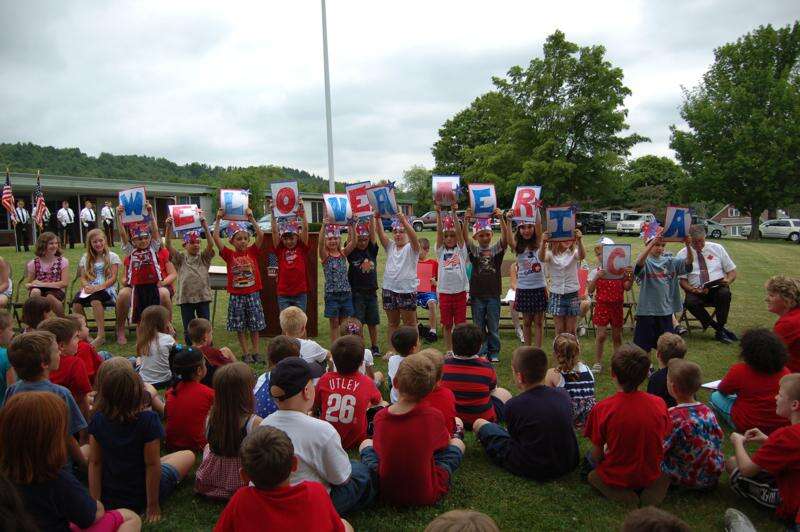 East Penn Elementary School recently held its first outdoor Memorial Day service with all students at the school taking part in the program.