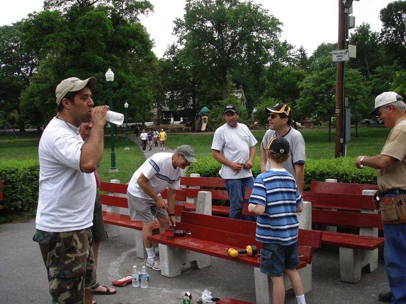Christine Campbell, president of the club, chose to replace the benches in the park as her President's Project during her two-year term as president to the club.With Campbell's organizational skills fully intact, she has worked hard in organizing her project. With the help of the Concourse Club members, members' spouses, area volunteers, a grant from Horsehead Industries, donations from Shea's Hardware, and Palmerton Lumber, the benches are now a reality.During the recent Community Day in the park, more than 50 volunteers, young and old alike, came to assist the club as they assembled the benches throughout the downtown park.Each park bench, which has been sponsored by a local business, area organizations, or residents of the Palmerton area, sports a brass plaque mounted on the top board, naming the sponsor of each bench.The club served coffee and doughnuts, ice water and a light lunch to all the volunteers who devoted their morning to assembling the benches.The 70 old green benches were removed by the Palmerton Borough workers and will now find new homes at area little league baseball fields and the Palmerton Memorial Park.A special park bench dedication ceremony will be held in the borough park in August.The Concourse Club has been the catalyst to many improvements to the borough park in the past, such as the restoration of the bandstand, improved walkways, and new lighting along the paths.
