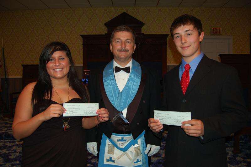 Lehighton Lodge 621 Free and Accepted Masons recently donated $250 scholarships to two graduating students, Aubrey Bourgault, left; and Zachary Althouse, right. Presenting the checks was Richard Hess, worshipful master. Bourgault is the granddaughter of David Schappell and is a 2010 graduate of Lehighton Area High School. She plans to study health care professional at Temple University, Philadelphia, to become a physical therapist. Zachary Althouse, of Lehighton, grandson of Wayne Althouse, is a 2010 graduate of Moravian Academy, who plans to study business at Wake Forest University, Winston Salem, N.C. The students were selected by the scholarship committee.