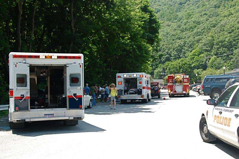 Police, Fire, and Ambulance personnel responded on Sunday around noon to the report of a fall victim on the bank of the Lehigh River just to the rear of the former CNJ Train station in Jim Thorpe. The injured victim, reportedly from the Philadelphia area, was transported from the scene by ambulance.