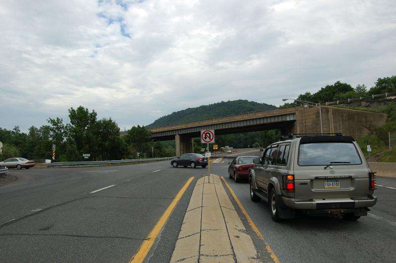 Gail Maholick/TIMES NEWS Traffic often backs up at the Route 209 and Harrity Road intersection near the Pa. Turnpike exchange. Franklin Township supervisors are saying "no thanks" to paying the costs of maintaining the signal.