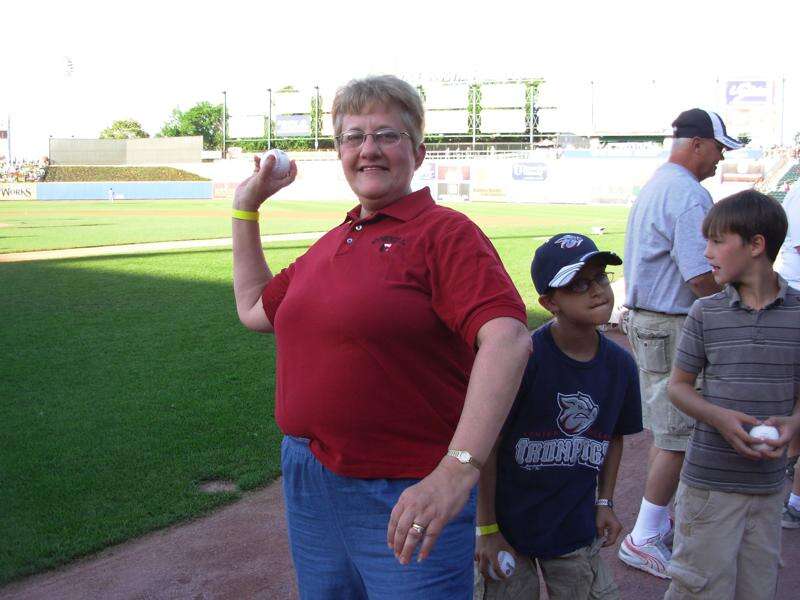 Almost 40 folks, including volunteers and friends of the Pleasant Valley Ecumenical Network along with PVEN director Eloise Laubach, made a trip to celebrate fellowship and friendship to the Iron Pigs baseball game in Bethlehem. Laubach was one of several chosen to throw out the traditional first pitch. And, it crossed the plate. She and others who participated received a ball and a miniature baseball bat as a memento. The PVEN outing, as arranged by PVEN volunteer and board secretary Charles Rush, included such entertainment as the Great Pork Race and the antics of FeRRouS and FeFe. Not only were folks of the PVEN group enjoying the evening, including Fourth of July fireworks, so were other locals with other groups, including Fred and Cathy Klein, who were part of a visiting motorcycle group and the Rev. Mike Netznik, pastor of McMichaels UMC of years ago. The IronPigs did not win, even though cheered on by the local groups.