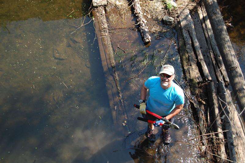 Trail tenders clean up lock at Parryville Tweet Published July 12. 2010 05:00PM by Doug Makofka of the Delaware and Lehigh Trail Tenders makes a wet day of it at the canal lock at Parryville.
