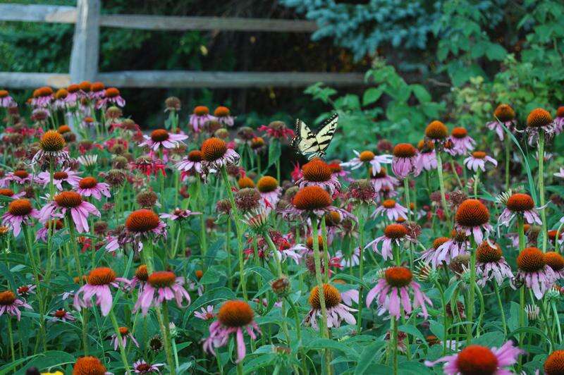 Coneflowers and butterfly Tweet Published July 13. 2010 05:00PM by An Eastern Tiger Swallowtail enjoys a snack on some coneflowers in a Towamensing yard. ELSA KERSCHNER/TIMES NEWS