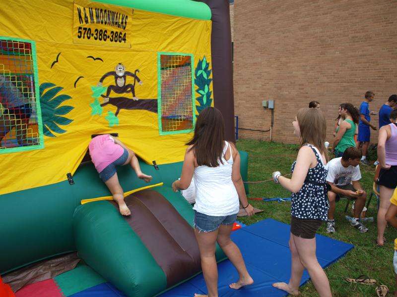 ANDREW LEIBENGUTH/SPECIAL TO THE TIMES NEWS Children and students enjoy themselves in the Moonwalk during the Men of Marian's 40th Annual Summer Picnic held over the weekend at the Marian High School.