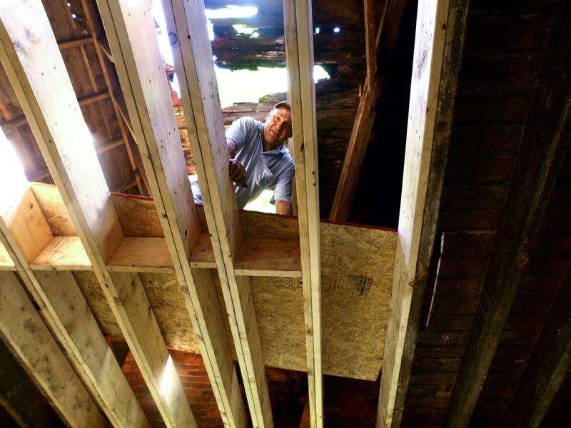 L.C.N.C and a mansion, completed in 1879, which Leisenring built for his daughter, Annie, and her husband Mahlon Kemmerer. Today all that remains of these buildings and that time, is the Kemmerer carriage house, located at the end of Kemmerer Park.During the days of its use, the carriage house was a handsome structure, with dormers, turrets, large wooden doors and a caretaker's house in back. After Mahlon and Annie moved away, the land fell into disuse. The mansion was dismantled in 1927. The park's basketball court is actually the footprint of that building.The carriage house deteriorated. The caretaker's house fell down. The roof caved in. Teenagers defaced the inside. The situation got so bad that the Jim Thorpe Borough Council was ready to destroy the building.At that point John Drury and the Kemmerer Memorial Park Association stepped in to try and save the building. Now two years have passed, money has been raised, plans have been started, and the building is on its way to recovery."We really tried to involve the community in the restoration efforts," said Drury. "We've had the Boy Scouts, members of the High School Honor Society and History Club, even prisoners from the local jail all come out and put in time working."And there was much to be done. Years of neglect had left the inside of the building a shambles and the roof had to be totally replaced. "We ended up with eight full truckloads of debris," said Drury.In addition to cleaning the debris, a new roof was put on; walls and floors were rebuilt. "It's been a lot of work," said Drury, "and we're very proud of what the community has done."The project has been done with an eye towards recreating the building as it was. Towards that end, a set of dormer windows, which were removed from the building 100 years ago, have been recreated."In order to make the building functional, some interior changes diverging from the original architecture have been made. "We moved the staircase to create more open space on the first floor, and we changed the ceiling in one upstairs room because it was so low before that there was no headspace," said Drury, "we want to have the building be functional."Originally, the building housed horses and a carriage. It is not clear at this time what exactly the building will be used for when it is finished.