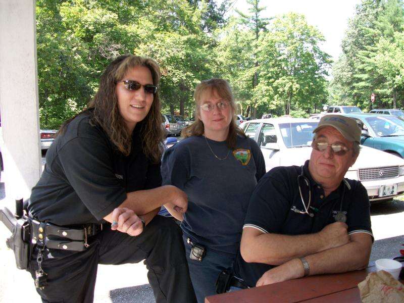 CHERYL KABANA/SPECIAL TO THE TIMES NEWS Officer Missy Johnson, Penn Mahoning Ambulance members Valerie Coombe and Donnie Hoppes at West Penn Senior Fun Day.