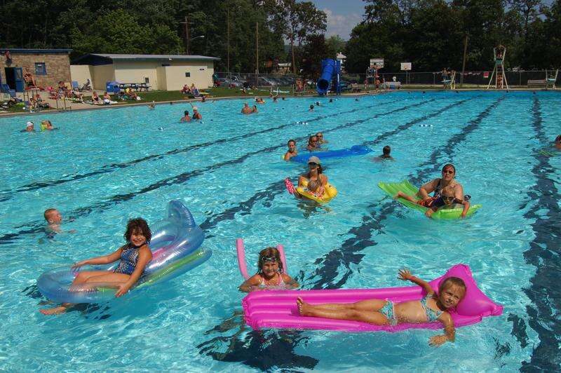 Swimmers float on rafts and other inflatables at the H.D. Buehler Memorial Pool at Tamaqua's Bungalow Park as part of "Float For Matt," which is a fundraiser being held at the pool for Tamaqua Police officer Matt Bynon, who is battling goblet cell carcinoid, a rare abdominal cancer. Each Friday this month, for a donation, swimmers can use rafts, noodles and other inflatables in the pool in an effort to assist Bynon in his fight with the disease.