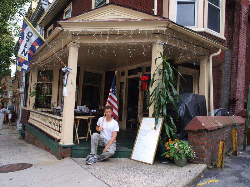 AL ZAGOFSKY/SPECIAL TO THE TIMES NEWS Matt Perdie on the porch of his family's Through the Looking Glass Restaurant in Jim Thorpe after returning from a 3,600-mile, 377-day "Walk Across America."