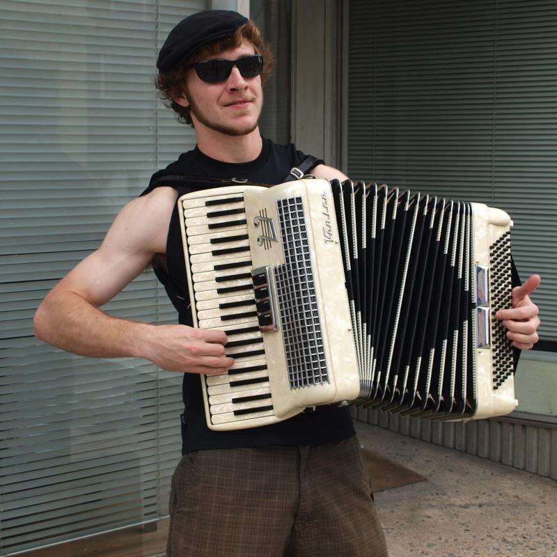 Accordionist Mike Mulligan, 18, of Tamaqua, chose to earn more money for college expenses by entertaining passersby in downtown Tamaqua by playing his accordion. He's had the instrument since he was eight and recently decided to learn. Mike, who also works at Heisler's Dairy Bar, stated that any extra money he earns playing his accordion will go towards his college tuition and other college expenses. Mike leaves for college in a few days and will major in meteorology. He is hoping to help further raise funds, if allowed, by playing his accordion at his Penn State College campus in State College.