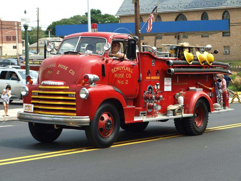 ANDREW LEIBENGUTH/SPECIAL TO THE TIMES NEWS Pictured participating in the 2010 Schuylkill County Firefighters Parade is a classic 1948 Chevrolet fire truck from the Schuylkill Hose No. 2 Fire Company in Schuylkill Haven.