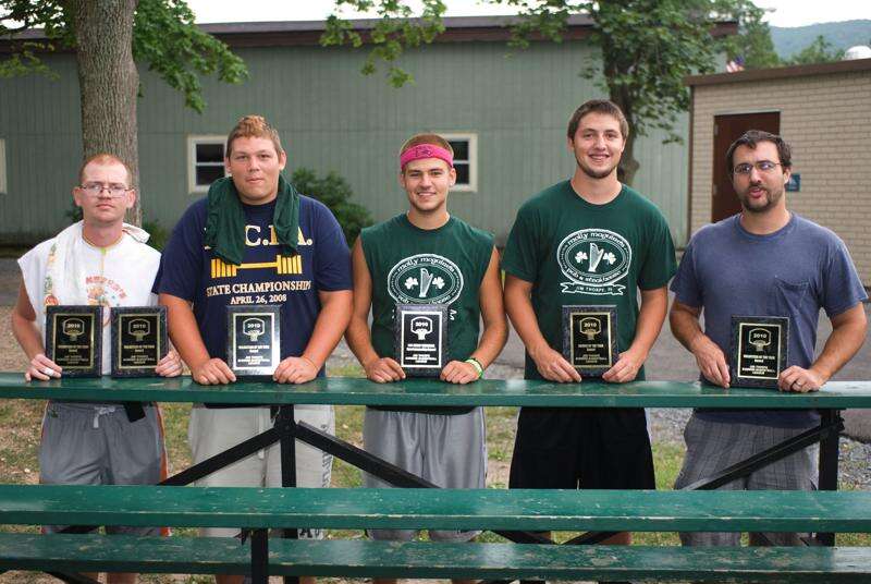 The Jim Thorpe Adult Summer Basketball League award winners for the 2010 season, included, from left, Harold Baker, Volunteer of the Year; Pete McGuire, Volunteer of the Year, Mike Luckenbill, The Denny Luckenbill Sportsmanship award; Matt Yaich, Rookie of the Year; and Earl Kunkel, Volunteer of the Year.