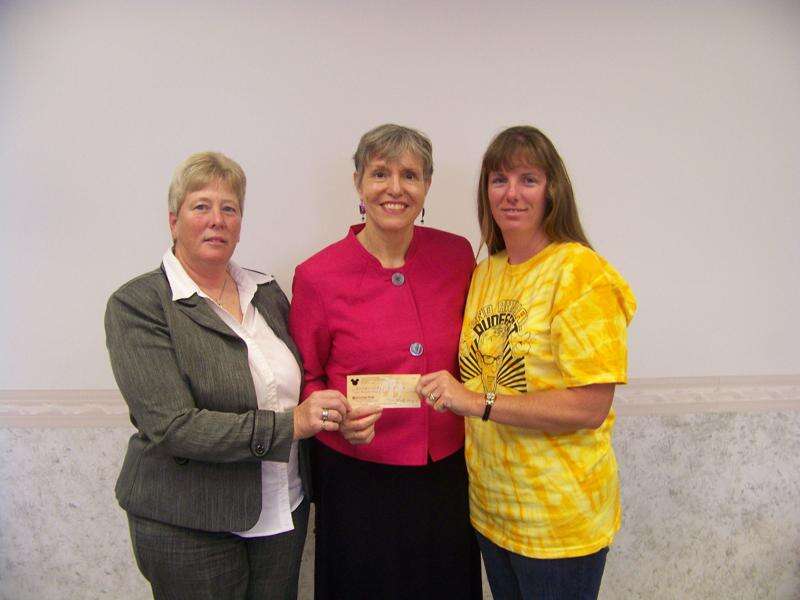 Tara McCarroll Stauffenberg of Tamaqua (third from left) presents a check for $2000 to Debbie Heim, Chair of the Schuylkill County Suicide Prevention Task Force, and Kay Jones, Director of Community Development Schuylkill County VISION, in memory of her brother, Cory P. McCarroll, who committed suicide in June of 2009. The funds were raised during the Labor Day Dudefest, an event Stauffenberg hopes will become an annual event dedicated to helping prevent suicides.