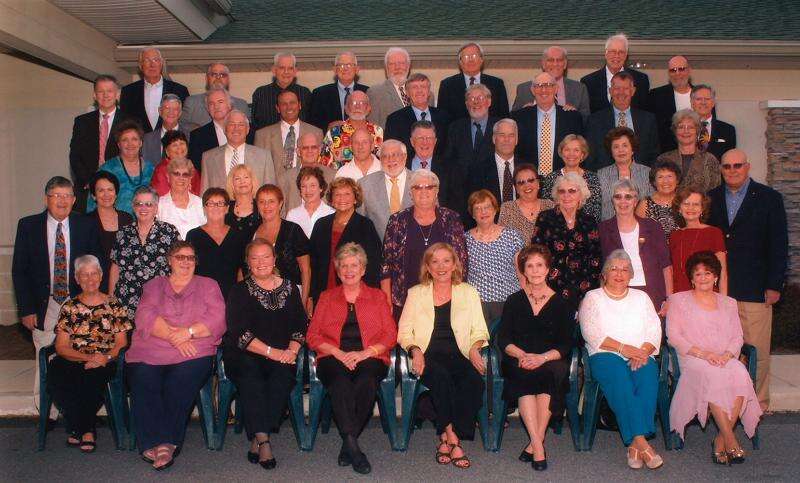 The Palmerton Area High School Class of 1960 held its 50-year reunion Sept. 11 at Blue Ridge Country Club. Classmate Jim Foley flew in from France to attend, while classmate Jack Kiss traveled all the way from Thailand. Those attending are, front from left, Margo Sturdik Ashner, Natalie Murray Pargas, Susan Tisiker, Mary Bray Gibbon, Karen Helmuth Gulden, Joanne Visnosky Carazo, Rita Gabovitz Shupp and Vivian Wentz Fried. Second row, Laird Costenbader, Kathryn Malik Olivia, Corinne Walker Hall, Mary Ann Papay Dolon, Janet Webb Martin, Jean Stein Smith, Frances Griffith Brann, Marlene Berger Fehr, Jane Sheckler Marsh and Dorothy Honishiko West. Third row, Linda Phillips Wimmer, Louise Rehrig Calvin, Iris Kramer, Gail Whitman Solt, Manuel Muniz, Roseann Koch, Carol Perich Lundby and Robert Partel. Fourth row, Mary Beth Horn Beers, Nancy Kercsmar Reinhart, Dick Heydt, Bob Borbe, Terry Costenbader, Brian Beers, Joe Nanovic, Karen Frable Donald, Joanne Bobita Harris and Cora Lee Borger Woodworth. Row five, Ray Heimbach, Keith Farber, James Federanich, Frank Yelinko, Roy Christman, Larry Mayer, Alan Samuelson, Jerry Hatyman, Jim Simpson and Mark Pastir. Row six, Jim Foley, John Sarik, Jack Kiss, Jan Gulden, Mike Simpson, Robert Meckes, Ray Carazo, Jim Scheib and Paul Wahrmann.