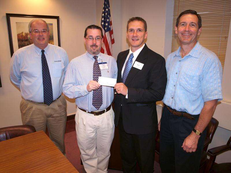 ANDREW LEIBENGUTH/SPECIAL TO THE TIMES NEWS Pictured during the donation presentation were, from left, Tamaqua Rotary Club President Lynn Zimmerman, Treasurer Richard Hadesty, St Luke's Director of Development Micah Gursky, and guest speaker retired Navy Commander Tony Konecny.