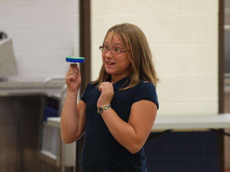 Student Jade McNutt of Mrs. Ingraham's 5th grade class sounds a rattle while participating in the Think Energy Program held recently at the Tamaqua Elementary School.