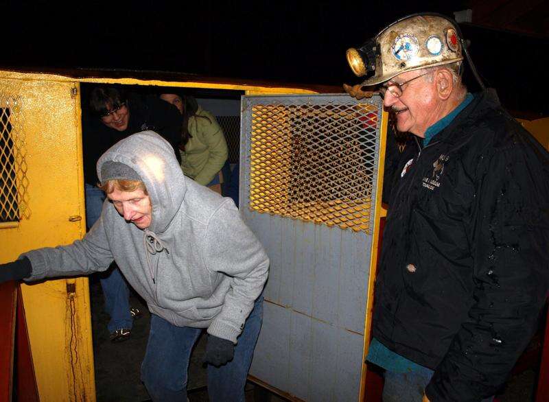 ANDREW LEIBENGUTH/SPECIAL TO THE TIMES NEWS The No. 9 Mine and Museum Organization held its first of two Haunted Halloween Mine Tour weekends for the season this past weekend at their No. 9 Mine and Museum in Lansford. This upcoming weekend, Friday Oct. 29 and Saturday Oct. 30 from 5 p.m. to 10 p.m., will wrap-up their tours. No. 9 Mine and Museum Organization President David Kuchta escorts Annette Kirchdoerfer, Nesquehoning, out of a passenger car. Kirchdoerfer's father, the late Joe Matta, was a coal mucker.