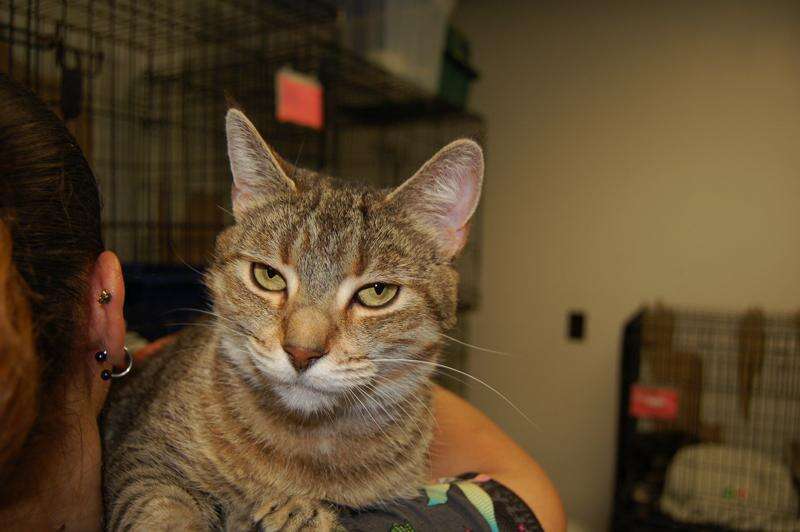 "Adriah," is a spayed black and brown domestic short hair tabby, available for adoption from the Carbon County Friends of Animals in Jim Thorpe. She is up-to-date on all her shots and is a very affectionate lap cat. She has been at the shelter since Feb. 18, 2010. For more information on Adriah, call the CCFOA at (570) 325-9400.
