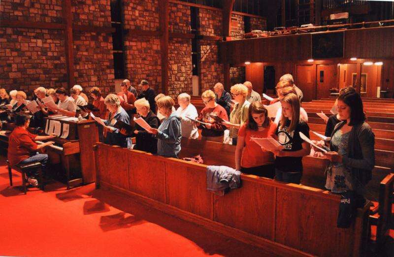 Special to the TIMES NEWS Members of the First United Church of Christ congregation sing during a concert held in September in honor of former Palmerton Area High School music teacher John Goodman. A second concert in honor of Goodman will be held Sunday at 7 p.m. at the church.