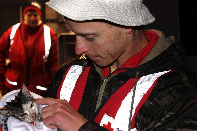 This cute 4-6 month old kitten was rescued from that fire in Mahanoy City this morning. The family owned 13 cats. This cat was the last one to be rescued. His name was DJ. He was soaking wet and shaking when he was rescued. Now he's looking for a new home. If you're interested in adopting DJ, you can respond to:
