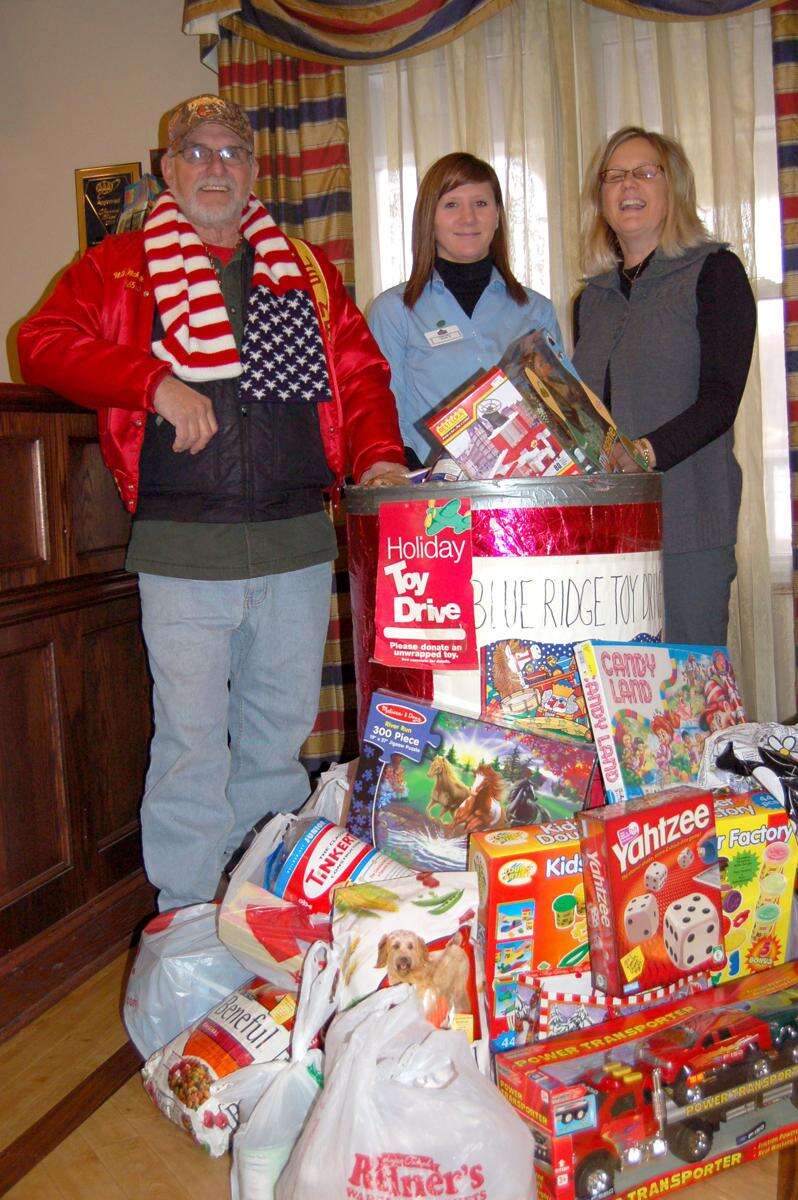 Country Inn and Suites, Lehighton, recently held a toy drive and fundraiser to raise funds for the Blue Ridge Food and Toy Drive. Not only did those attending fill a toy barrel to overflowing, they also provided $889 in donations to help purchase food baskets for needy families. The project was a combined effort of Caitlin Spiker, center, and RoseAnn Lesher, owner of the hotel. Nick Hawkey, a member of the Carbon-Mountaineers Marine Corps League Detachment 996, coordinates the Blue Ridge Food and Toy Drive.