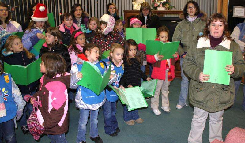Andy Leibenguth/special to the times news Members of Tamaqua Girls Scouts Service Unit 310 entertain with holiday carols.