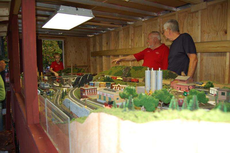 Left to right, Jacob Bacher, 10, loves model trains and is a new member of the Carbon Model Railroad Club. He had a great time running the trains at the club's stand at the Palmerton Community Festival, along with members Dale Evans, center, and Phillip Bonser, right. Garry Mack, president, says the trains are HO scale and the club takes its traveling display all over to fairs, festivals and other events and has been doing it for the last 15 years. The stand is in the process of taking on the appearance of a real train caboose and he says it will be completed by next year.
