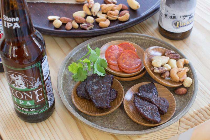 How about some homemade beef jerky? Because while it may sound daunting to season and dry your own meat, it actually is a simple process that requires little hands-on time. It also can be done well ahead as in several weeks and the results are pretty spectacular. And let's not forget how wonderfully a well-seasoned hunk of jerky goes with all that beer you'll be drinking.At its most basic, jerky is thinly sliced meat that is slowly dried until most of the moisture is removed. While some people use food dehydrators for this, an oven set at 200 F works just fine, too.But nobody wants plain jerky, and that's where the marinade comes in. Once the meat is sliced, you give it a bath in something really flavorful for 8 to 10 hours. And those flavors can go in pretty much any direction you like, though big and bold are pretty much the best way to go. Think ingredients like hot sauce, lime juice, soy sauce and coffee.In terms of equipment, all you need are a rimmed baking sheet and a wire rack (the sort you cool cookies on). You set the rack over the pan, lay the marinated meat on the rack, then pop it in the oven for a few hours.Once the jerky is dried, be sure to let it cool fully. It will seem tender at first, but it will be drier and firmer once cooled. Store in an airtight container in the refrigerator for several weeks. Or until you have time to make a beer run for the big game.Sweet Heat Beef JerkyWhen making jerky, you want to get very lean beef. Top or bottom round is good if you want large, wide slices of jerky. For thin strips, flank steak (cut against the grain) is good. Whatever cut you get, be sure to trim away and discard as much fat as possible before slicing and marinating.Start to finish: 3 and a half to 4 and a half hours (30 minutes active), plus coolingServings: 1212-ounce can cola (not diet)one-half cup brown sugarone-quarter cup soy sauce2 tablespoons hot sauce (adjust to your tolerance)one-half teaspoon coarsely ground black pepper2 and a half pounds lean beefIn a large bowl, gently whisk together the cola, brown sugar, soy sauce, hot sauce and black pepper. Cut the beef into slices about a quarter-inch thick and add to the marinade. Cover the bowl and refrigerate 8 to 10 hours.When ready to dry the jerky, heat the oven to 200 F. Line a rimmed baking sheet with foil, then set a metal rack over it. Mist the rack with cooking spray.Remove the slices of jerky from the marinade, shaking them lightly to remove excess liquid. Arrange the slices on the prepared rack, leaving just enough space between them so they don't touch or overlap.Place the baking sheet on the oven's middle shelf. Leave for 3 hours. Once an hour, rotate the pan front to back. After 3 hours, check the jerky. It should be just barely tender. If not, return to the oven for another 30 minutes to an hour, checking regularly. Remove the pan from the oven and let dry completely on the rack. Refrigerate in an airtight container for up to 3 weeks. Let come to room temperature before serving.Nutrition information per serving: 150 calories; 45 calories from fat (30 percent of total calories); 5 g fat (1.5 g saturated; 0 g trans fats); 60 mg cholesterol; 3 g carbohydrate; 0 g fiber; 3 g sugar; 21 g protein; 135 mg sodium.Maple Coffee Pepper JerkyWant sweet, bold flavor without the heat? Try this variation on the recipe above. Use the same method for preparing, marinating and drying the beef, but substitute the following marinade.2 cups strong black coffee1 cup maple syrup1 teaspoon coarsely ground black pepper3 teaspoons kosher saltIn a large bowl, stir together the coffee and maple syrup until the syrup dissolves. Stir in the black pepper and salt. Use the marinade as directed in the recipe above.Nutrition information per serving: 150 calories; 45 calories from fat (30 percent of total calories); 5 g fat (1.5 g saturated; 0 g trans fats); 60 mg cholesterol; 5 g carbohydrate; 0 g fiber; 4 g sugar; 21 g protein; 190 mg sodium.