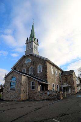 The landmark stone church at 45 Cemetery Road in rural New Ringgold is home to two of the region's earliest congregations, now merged into one.