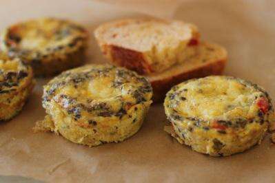 A frittata is an Italian omelet, but one in which all of the add-ins (cheese, veggies, meat, rice, what have you) are mixed directly into the eggs (rather than folded into the center). And that makes them so much easier and less fussy. The only real challenge about making frittatas is getting the top to cook. Some brave souls will try to flip them. I'd rather rely on the broiler (meaning I start the frittata on the stovetop to cook the bottom, then pop it under the broiler to finish the top).Or sometimes I just turn to my trusty muffin pan. If you distribute the frittata mixture among the cups of a 12-cup muffin pan, you end up with 12 adorable little frittatas, individually sized, portable, cute as buttons. Plus, they tend to cook more quickly and with even less effort than if you start them stovetop.You can play with this concept endlessly. Add cubes of tender (cooked) potato, steamed broccoli florets, leftover rice, crumbled cooked sausage or bacon, whatever. Frittatas are a great way to stretch some random bits and pieces languishing in the refrigerator into another lovely meal. Breakfast, lunch, snack, dinner, I am happy to see a frittata at any point of the day.I'm also happy to eat a frittata warm from the pan, at room temperature, or even cold the next day. Come, join me in the wide world of frittatas.Southwestern Mini FrittatasStart to finish: 30 minutesMakes 12 mini frittatas2 tablespoons butter, divided1 medium yellow onion, chopped1 red bell pepper, cored and dicedKosher salt and ground black pepper2 cups chopped button mushrooms1/2 teaspoon dried oregano10 large eggs1/2 cup crumbled queso fresco or feta cheeseHeat the oven to 350 F. Mist a 12-cup muffin pan with cooking spray.In a medium skillet over medium, heat 1 tablespoon of the butter until melted. Add the onion and red pepper, then season lightly with salt and pepper. Cook, stirring occasionally, until the onions are golden brown and tender, about 6 minutes. Transfer the vegetables to a plate, then return the skillet to the heat.Add the remaining tablespoon of butter and add the mushrooms and oregano. Lightly season with salt and pepper, then increase the heat to medium-high. Saute for about 8 minutes, or until there is no liquid left in the pan and the mushrooms are beginning to brown.Meanwhile, in a medium bowl, whisk the eggs, then season them with salt and pepper. Add the onion and pepper mixture along with the mushrooms, then stir to combine. Use a small ladle to fill each muffin cup with the egg and vegetable mixture almost to the top.Sprinkle the cheese evenly over each frittata, then bake until they puffed and set, the cheese is melted and the tops are lightly golden, about 15 minutes. Remove from the oven and let sit for 1 to 2 minutes, then use a butter knife to pop the frittatas out of the tins. Let sit for a few more minutes on a wire rack. Serve warm, at room temp or even cold.Nutrition information per frittata: 100 calories; 60 calories from fat (60 percent of total calories); 7 g fat (3 g saturated; 0 g trans fats); 190 mg cholesterol; 170 mg sodium; 3 g carbohydrate; 0 g fiber; 1 g sugar; 7 g protein.Katie Workman has written two cookbooks focused on easy, family-friendly cooking, "Dinner Solved!" and "The Mom 100 Cookbook." She blogs at
