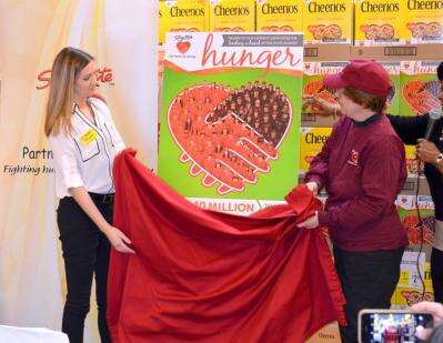 Tuesday afternoon Lehighton's own Beth Everett and Rhianna Cenci of Whitehall were announced by ShopRite representative Orien Reid as this year's Cheerios contest winners in the Lending a Hand for Hunger campaign."These two ladies worked so hard trying to help people. They are certifiably hometown heroes of Brodheadsville."Reid said the duo, along with the Kinsley family-owned store, raised over $17,000 for the annual drive. Store cashier Everett raised $842 through customer donations in her checkout line."I raised it by asking people to donate. I don't want to see anyone go hungry," she said. "You never want to see kids asking their parents for food and there is nothing in the cupboard.""SNAP (state food stamp program) has continued to get cut. Families have lost 21 meals a month. How do you make up for that?" Reid said.The Kinsley's ShopRite Annual Golf Tournament held in June gathered the bulk of the funds where Cenci worked tireless hours as coordinator for the event."We raised $14,000 through the tournament alone this year," she said.The Brodheadsville store was one of the top 41 stores in the six participating states in the fundraising challenge."While raising money is important, what's equally important is raising awareness about hunger," Reid said. "When it comes to the suburbs, people think everyone is fine. But you would never believe the people that are food insecure."Being food insecure is defined as not knowing where or when the next meal is coming."It could happen to anyone. Illnesses, divorces, financial hardship can cause anyone to not know where their next meal is coming from. That's why ShopRite partnered with General Mills. We don't believe children should have to go to school and not have breakfast," Reid said.Each of the 40 winning stores chose two associates to be featured on the special edition Cheerios box. The customized containers will be sold exclusively at ShopRite during March.The Kinsley family was on hand during the celebration of the employees complete with giant Cheerios chocolate cake."It's a fantastic day. We have a lot of great associates who get behind the cause," Chris Kinsley Sr. said. "Their co-workers nominated Beth and Rhianna for the feature. This is Beth's second year on the box."The two-time Cheerios contest winner will bring her plastic-encased commemorative cereal box home to the family."I'm going to put the box on top of my computer desk next to last year's."