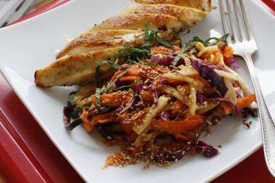 Kohlrabi, miso and soy sauce lend an Asian flavor to slaw