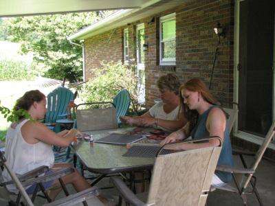 Molly, left, Kris and Hannah work together to get Kris' classroom decorations ready for school.