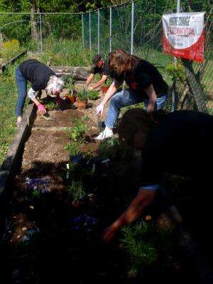 Master Gardeners planting perennial herb garden at the Carbon County Environmental Education Center: Front to back: Delores Ford, Sharon Gerhard, Janet Minnich and Bob Hipp.
