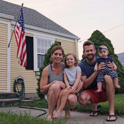 Ryan Smith, right, poses with his wife Sarah and children Ashton, 2, and Eden, 6 months, outside their family home in Cranston, Rhode Island. Both of the Smiths were able to take advantage of paid family leave with the birth of their daughter Eden. AP PHOTO/CHARLES KRUPA Copyright - Copyright 2016 The Associated Press. All rights reserved.