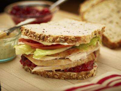 Throughout this celebration, though, there is one lingering thought in the back of our minds that cannot be ignored: Tomorrow there will be leftovers.Will we eat pie for breakfast? Will there be turkey soup simmering on the stove?Did we buy bread specifically for the purpose of making sandwiches with leftovers? The answer to all of these questions should be yes.Every family has its own unique Thanksgiving traditions and recipes. But the next day, homes across America are bound by a common ritual: the day-after turkey sandwich.And while our recipe for a Thanksgiving Sandwich has all of the classic components (plus bacon!), the beauty of leftovers is that they can be personalized to suit your mood - and the contents of your refrigerator.Eventually, we all suffer from turkey and mashed potato fatigue. Luckily, all it takes is a few minutes and a little bit of creativity to transform these ingredients into something fresh.Make a gourmet brunch at home by chopping turkey, roasted veggies, and stuffing; browning it in a skillet; and serving with a fried egg and hot sauce.Dessert isn't immune to leftovers, either.If you run out of enthusiasm for eating that apple or pecan pie, try scooping out the filling (or, if you're bold, mashing up the whole thing, crust and all) and folding it into freshly churned ice cream.We think cinnamon, bourbon or maple would make some seriously awesome sundaes.Thanksgiving SandwichStart to finish: 15 minutesServings: Four½cup mayonnaise1 tablespoon chopped sage8 slices whole-grain bread3/4 cup Cranberry Sauce (recipe follows)1 pound sliced turkeyLettuce, as neededSliced tomatoes, as neededSliced crisp bacon (optional)In a small bowl, combine the mayonnaise and sage.To assemble the sandwiches, spread 4 of the slices of bread with the mayonnaise mixture, add a layer of cranberry sauce, and top with the turkey, lettuce, and tomato. Spread the remaining four slices of bread with cranberry sauce and place on top of the turkey. Slice the sandwiches in half and serve.Chef's note: You can make a Turkey Club Sandwich by simply adding another slice of bread and another layer of cranberry sauce, turkey, bacon, lettuce and tomato.Cranberry SauceMakes 1¼ cups3/4 cups fresh cranberries2 tablespoons sugar½cup water2 teaspoons grated orange zestIn a medium saucepan over medium heat, combine the cranberries, sugar, and water. Bring to a boil and whisk to break up the cranberries.Cook the mixture until the cranberries burst and the sauce has thickened, about 5 minutes. Remove from the heat and stir in the zest. Cool completely before serving.Thanksgiving Sandwich:Nutrition information per serving: 432 calories; 207 calories from fat; 23 g fat (4 g saturated; 0 g trans fats); 71 mg cholesterol; 972 mg sodium; 26 g carbohydrate; 4 g fiber; 4 g sugar; 29 g protein.Cranberry Sauce:Nutrition information per serving: 33 calories; 4 calories from fat; 0 g fat (0 g saturated; 0 g trans fats); 0 mg cholesterol; 0 mg sodium; 3 g carbohydrate; 0 g fiber; 2 g sugar; 0 g protein.