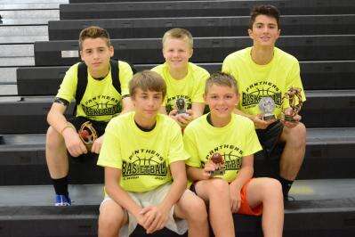 Students in grade 7-9 who won awards at the Panther Valley Basketball Camp, conducted by high school basketball coach Pat Crampsie, were, front row from left, Julian Matula, Matt Mahalik; back row, Anthony Fatzie, Bryce Krapf and Tommy Edward.
