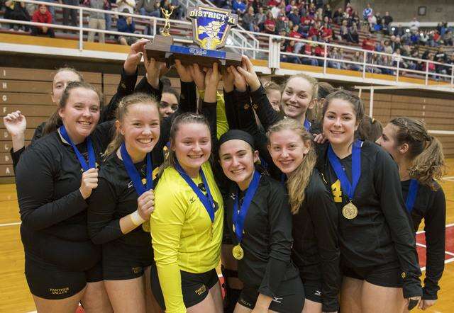 Two sets of sisters – Olivia and Christina Dacey and Erika and Jenna Dubosky – were on the court Tuesday night when Panther Valley defeated Pine Grove 25-21, 20-25, 25-9, 25-19 for the District 11 Class 2A title.
