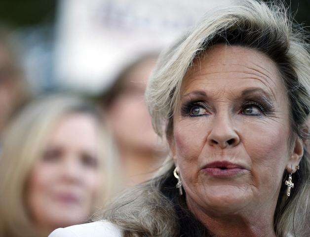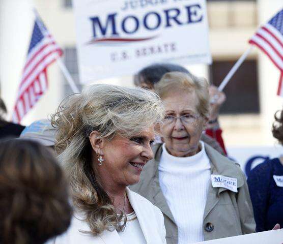 MONTGOMERY, Ala. (AP) — Standing on the white marble steps of Alabama's Capitol, Kayla Moore surrounded herself with two dozen other women Friday to defend husband Roy Moore against accusations of sexual misconduct that are dividing Republicans, and women in particular.