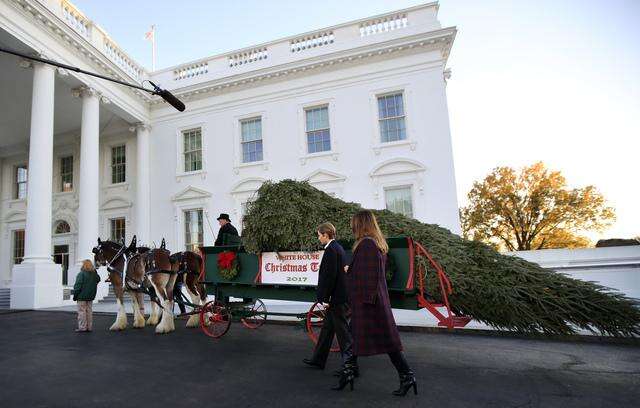 After Mrs. Trump and Barron gave their symbolic approval, the tree was carefully carted off to the Blue Room where, after a slight trim and the removal of a monstrous chandelier, it will become the holiday showstopper for a president who has vowed to put Christmas back in the center of the winter holidays.