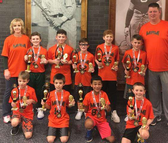 The Miami Hurricanes captured the Olympian Booster Club third and fourth grade basketball league championship, as well as the Jim Thorpe/Panther Valley Booster Club championship. The team had a 14-2 record this season. Team members were, front row, from left, Gavin Goff, Alias Keen, Christian Ortiz and Lucas Kline. Back row, head coach Danielle Hess, Kaden Hess, Michael Antignani, Zack Murphy, Cole Lazorick, Brody Schrantz, and assistant coach Eric Schrantz. Pierce Gothard was also a member of the team. CONTRUBUTED PHOTO.