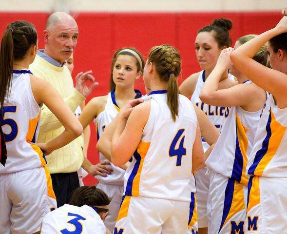 March 14, 2012 — Paul Brutto earns his 600th career coaching win as the Marian girls build an early advantage and coast to a 56-39 victory over Harrisburg Christian in the second round of the PIAA Class 1A state playoffs. Kelly Shober and Gabby Green each tally six points during a 19-2 first-half run that gives the Fillies the lead for good. Shober finishes with a game-high 18 points and 11 rebounds, while Green ends with 11. The winners also receive seven points from Kaysi McLaughlin and Danielle Tristani, with Sam Faust adding eight boards.