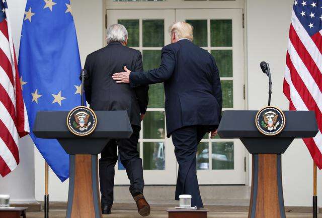 In a hastily called Rose Garden appearance with Trump, European Commission President Jean-Claude Juncker said the U.S. and the EU had agreed to hold off on new tariffs, suggesting that the United States will suspend plans to start taxing European auto imports — a move that would have marked a major escalation in trade tensions between the allies.