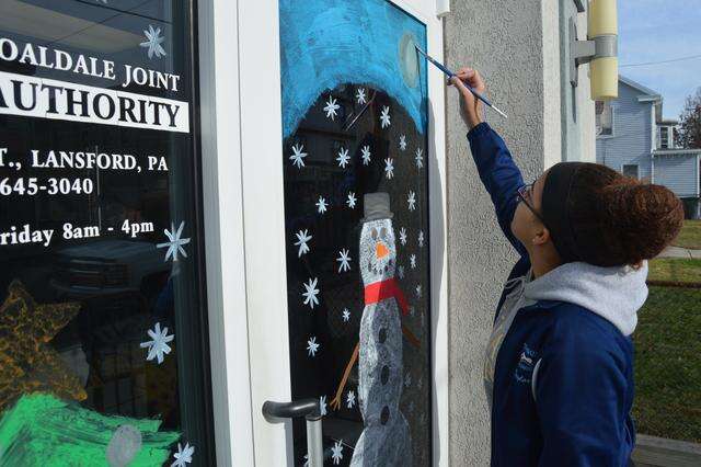 About 20 art club members braved freezing weather Wednesday to paint the windows of businesses around Lansford. In an annual tradition in the borough, the nonprofit Lansford Alive asked businesses to lend their windows to the young artists.