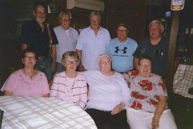 The Packerton Independent School Class of 1959, the school’s final graduating class, held its 60th anniversary reunion at Pappy’s Schoolhouse Restaurant and Tavern in Franklin Township. Classmates in attendance were, front row, from left: Doris Zanders Sheckler, Marlene Mertz Hawk, Gertrude Walck Kulp and Barbara Mertz Leickel. Back row: Vincent Crostley, Willard Dreisbach, Warren Miller Jr., Paul Wallace and Barry-Lee Ahner Sr. CONTRIBUTED PHOTO