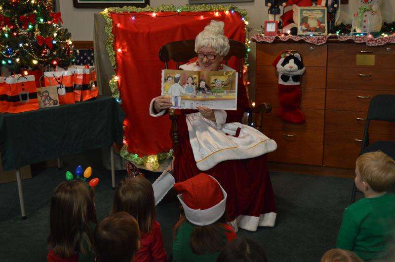 Dressed as Mrs. Claus, Donna Leiser reads to children in the Slatington Library. The public reading was one of a handful of happenings to take place Friday night in town during the borough's tree lighting ceremony. DANIELLE DERRICKSON/TIMES NEWS