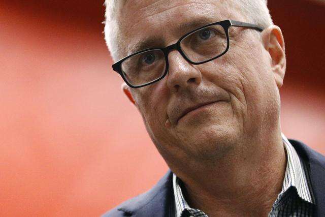 FILE - In this Oct. 24, 2019, file photo, Houston Astros general manager Jeff Luhnow departs after a news conference in Washington. Houston manager AJ Hinch and general manager Jeff Luhnow were suspended for the entire season Monday, Jan. 13, 2020, and the team was fined $5 million for sign-stealing by the team in 2017 and 2018 season. Commissioner Rob Manfred announced the discipline and strongly hinted that current Boston manager Alex Cora — the Astros bench coach in 2017 — will face punishment later. Manfred said Cora developed the sign-stealing system used by the Astros. (AP Photo/Patrick Semansky, File)